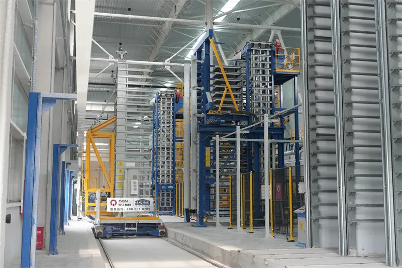 QGM मेसिनरी उत्पादन लाइनले पूर्ण रूपमा स्वचालित डिजाइन अपनाएको छ र उन्नत उपकरणहरू जस्तै सर्वो प्यालेटाइजिङ प्रणाली र पूर्ण रूपमा स्वचालित आमा र बच्चा कार प्रणाली QGM द्वारा स्वतन्त्र रूपमा विकसित गरिएको छ, कच्चा माल प्रशोधनबाट समाप्त उत्पादन स्ट्याकिङसम्म पूर्ण प्रक्रिया स्वचालन महसुस गर्दै। ती मध्ये, उच्च परिशुद्धता स्थिति प्रणाली र बुद्धिमान प्यालेटाइजिंग रोबोटले स्थिर र कुशल उत्पादन सुनिश्चित गर्दछ, समग्र ऊर्जा खपत 25% र श्रम लागत 40% ले घटाउँछ।