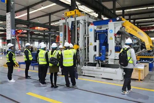 QMG को बौद्धिक उत्पादक कार्यशाला प्रविष्ट गर्दा, आगन्तुकहरूले पूर्ण स्वचालित ब्लक बमोजिम मेशिनले अवलोकन गरे। सयौं टन तौलको मेशीन निकाय, सटीक सम्बन्धको साथ हाइड्रोलिक प्रणाली, अनुकूलन स्विचको साथ मोल्ड एकाईलाई सामान्य रूपमा ग्रीन भवन निर्माणको लागि अनुकूलित गर्दछ। "